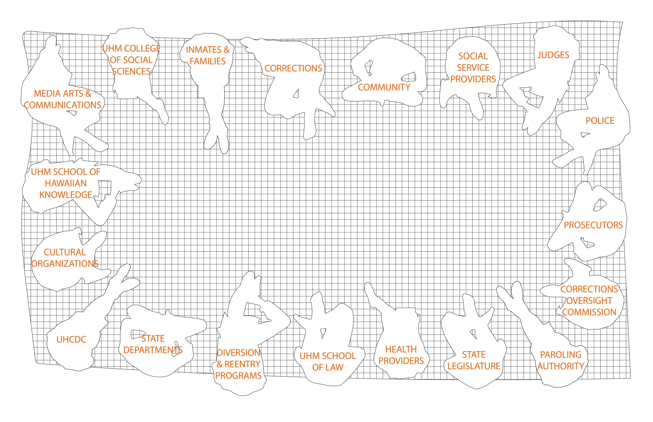 The University of Hawaiʻi at Mānoa (UHM) is a Native-Hawaiian Place of Learning and indigenous-serving university , responsible for providing access to public higher education for all Hawaii’s residents. The UHM team is led by Camille Nelson, dean of the UH William S. Richardson School of Law, and Jonathan Kamakawiwo'ole Osorio, dean of the UH Hawai’inuiākea School of Hawaiian Knowledge, supported by the UHM College of Social Sciences and the University of Hawaiʻi Community Design Center, in collaboration with members of the Hawaiʻi Supreme Court, Honolulu Police Commission, Correctional System Oversight Commission, Hawaiʻi Health and Harm Reduction Center, Law Enforcement Assistance Diversion (LEAD) Hui, Hina Mauka, YWCA O’ahu, Community Alliance on Prisons, Native Hawaiian Legal Corporation, and Hawai’i International Film Festival, along with State Representative Sonny Ganaden, State Senator Donovan Dela Cruz, and filmmaker Ciara Lacy. This broad leadership coalition includes vital state sectors and the teaching, research, and service capacity of UHM. Our ability to build a community-based justice and healing infrastructure will draw upon and strengthen our network of diverse potential partners that already provide social, cultural, health, education, employment, ecological restoration, agricultural production, and faith-based services to the community.